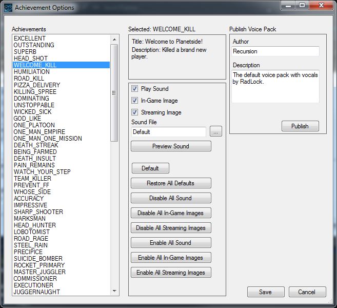 This allows you to set individual options for every achievement in the Real-Time Stat Tracker including the ability to choose a new audio file to play.